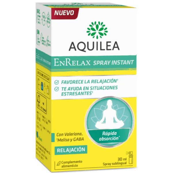 https://www.mifarma.fr/aquilea-enrelax-spray-instantane-30-ml293625108041Aquilea Enrelax Spray Instantané 30 ml<p><span>Aquilea Enrelax Spray Instant</span> est un produit conçu pour <span>favoriser la relaxation et soulager le stress.</span></p><p> Il contient trois ingrédients principaux : <span>la valériane, la mélisse et le GABA.</span></p><p> <span>- La valériane</span> est un ingrédient végétal connu pour ses <span>propriétés calmantes.</span> Il est utilisé depuis des siècles pour aider à soulager l’anxiété et favoriser la relaxation.</p><p> - On pense que la valériane agit en augmentant les niveaux d un neurotransmetteur appelé <span>GABA</span> dans le cerveau, qui a un effet calmant sur le système nerveux.</p><p> <span>- La mélisse</span> , également connue sous le nom de mélisse, est un autre ingrédient végétal qui a des effets calmants. Il est souvent utilisé pour réduire l’anxiété et favoriser la relaxation.</p><p> <span>Absorption rapide.</span><br></p><p> Sans gluten, lactose, colorants ni sucres.<br></p>https://assets.atida.com/transform/92a5fabb-c1e4-43ba-a4dc-78c8583ea76a/Aquilea-Enrelax-Spray-Instant-30-ml?io=transform:extend,width:250,height:25011.99outofstock11.9910.61061846902700Aquileahttps://www.mifarma.fr/media/catalog/product/5/f/7/c/5f7c35da561b0652a9adcb44073accab3fa66d1e_Product_Tile_Thumbnail_Aquilea_Enrelax_Spray_Instant_30_ml.png/Herboristerie/Vitamines et Compléments/Compléments/Équilibre Émotionnel et Relaxation/Vitamines et Compléments/Vitamines et Compléments/Compléments/Black Friday/cyber_monday_pt_int/Singles' Day: -70 %!/Jusqu’à –15 % sur Aquilea2024-09-16T05:49:58+0000