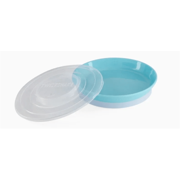 Assiette antidérapante Twistshake avec couvercle bleu pastel + 6 m