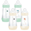 Pack économique d'un total de 4 biberons Easy Start Anti-Colic qui réduisent les coliques (1) et l'inconfort et permettent une alimentation authentique et détendue car le système innovant et exclusif MAM Anti-Colic, avec une valve à la base du biberon, empêche la formation de bulles d'air dans le liquide.