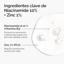 1% de Zinc régule la production de sébum, apaise la peau et favorise la récupération grâce à ses propriétés anti-inflammatoires et antioxydantes.